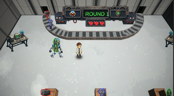 この 2D トップダウン アクション ゲームの目的は、ライフがなくなる前にできるだけ多くのラウンドをクリアすることです。
